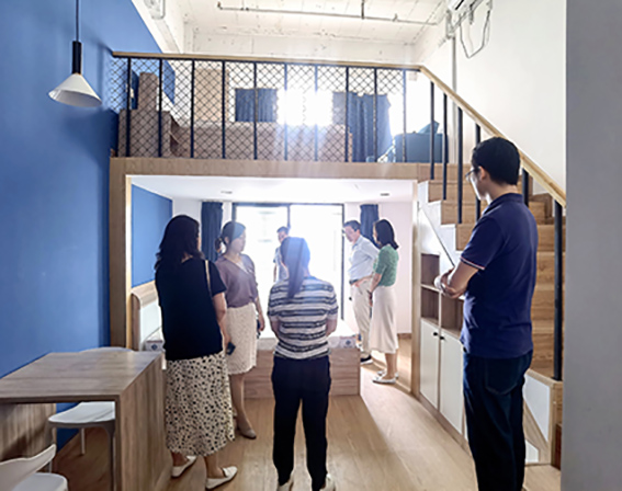 謝華友副局長(zhǎng)一行參觀了公寓內(nèi)的休閑娛樂(lè)區(qū)、聯(lián)合辦公區(qū)、公寓房間、露天陽(yáng)臺(tái)等功能區(qū),聽(tīng)取了琥珀租賃及優(yōu)樂(lè)公寓基本情況匯報(bào),并詳細(xì)詢問(wèn)了優(yōu)樂(lè)公寓的運(yùn)營(yíng)管理、系統(tǒng)使用、自有平臺(tái)與市租賃平臺(tái)對(duì)接現(xiàn)狀及新項(xiàng)目的工作進(jìn)展等情況,對(duì)優(yōu)樂(lè)公寓三孝口店的產(chǎn)品品質(zhì)、運(yùn)營(yíng)服務(wù)水平表示高度認(rèn)可,同時(shí)對(duì)琥珀租賃的發(fā)展提出殷切期望。