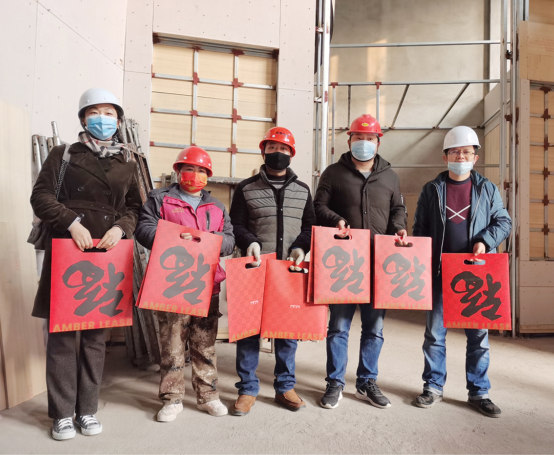 結(jié)束時,田總還向現(xiàn)場工人贈送了琥珀租賃定制的春聯(lián)禮包,并向大家致以新年祝福。