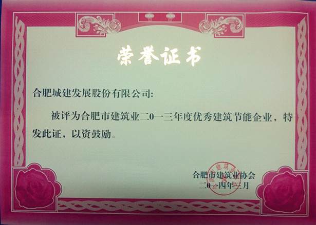 合肥城建被評為“合肥市建筑業(yè)2013年度優(yōu)秀建筑節(jié)能企業(yè)”